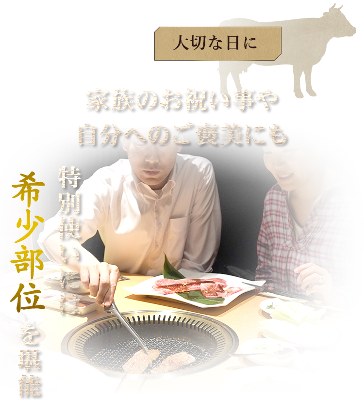 入学式や卒業式などのお祝い事や、頑張った自分にご褒美、また誕生日や記念日に、民芸焼肉 迎賓館が誇る希少部位を堪能ください。美しいサシが入った部位からあっさりと召し上がれるイチボやランプなどお肉好きにはたまらない部位をご用意しております。